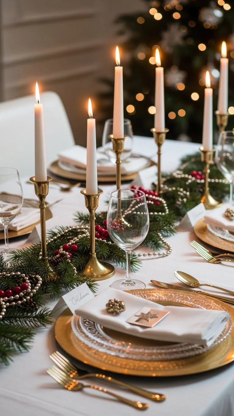 Metal adds a soft glow. Keep it light. Brass or gold works well. Use candle holders or flatware. Avoid too much shine. Mix metal with natural elements. This keeps the table balanced. Metal accents catch candlelight nicely. They add warmth without effort. You can reuse these items year-round. Small metallic touches go a long way.