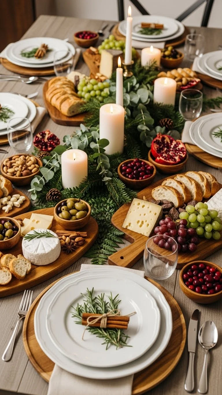 Serving boards can sit on the table before the meal. Add bread, fruit, or nuts. They act as decor and food. Choose boards with character. Scratches add charm. Space boards evenly. This saves room in the kitchen. Guests can snack while waiting. Boards work well with wood accents and neutral linens. After dinner, clear them easily. This idea keeps the table active and welcoming.