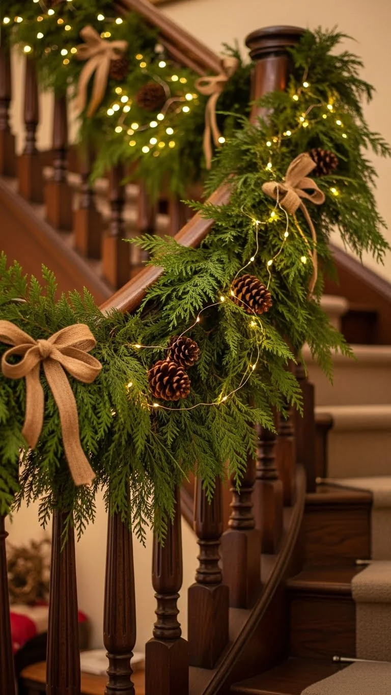 - Fresh Greenery Staircase Garland