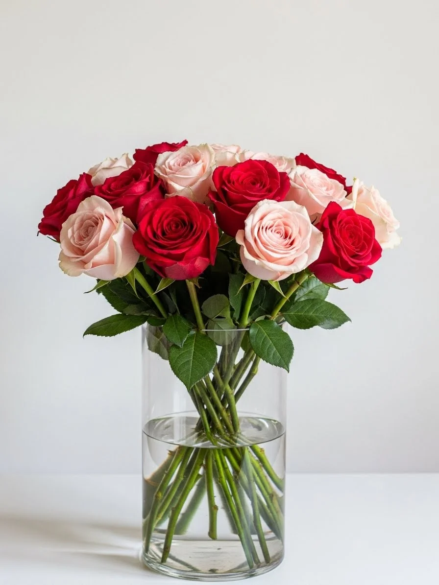 - Roses in a Clear Cylinder Vase