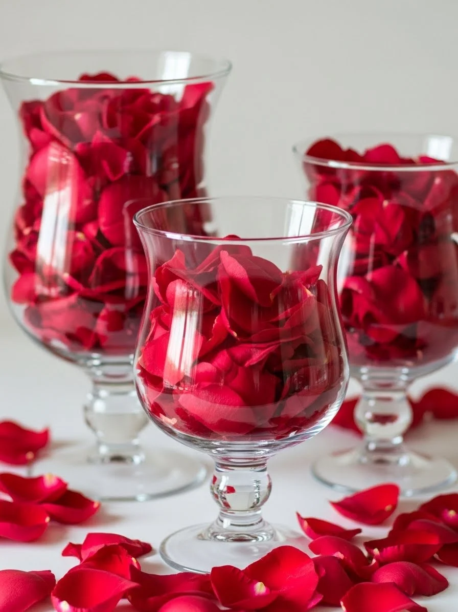 - Rose Petals in Glass Hurricanes