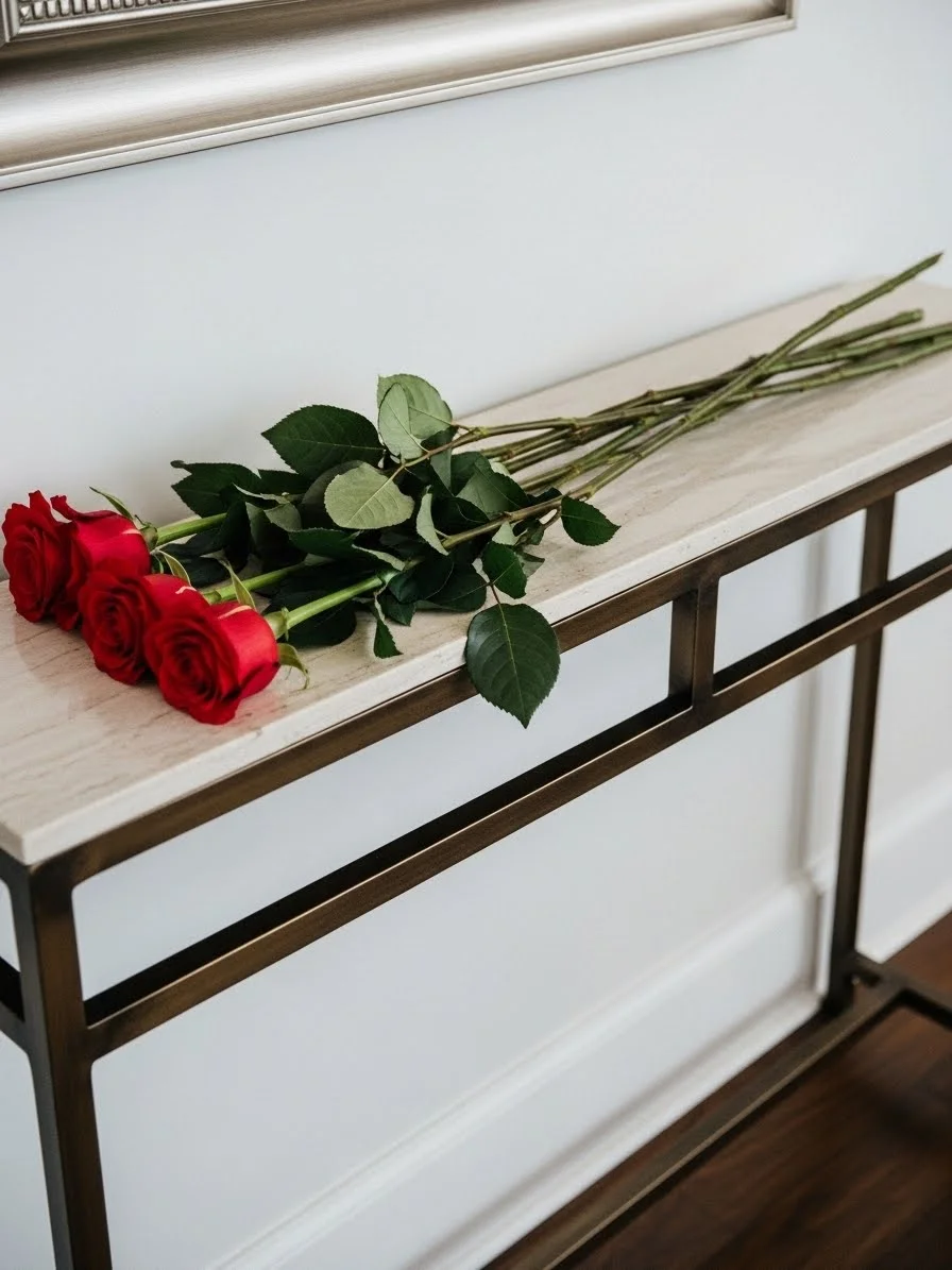 - Rose Stems Laid Flat on a Console