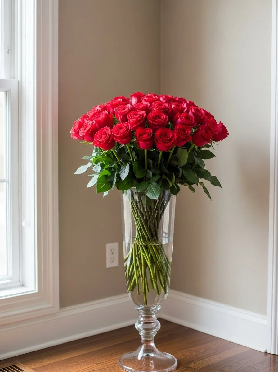 Tall floor vases add presence with little effort. Use long-stem roses or faux branches. Keep the vase simple. Place it near a window or corner. Avoid adding other decor nearby. Single statement pieces feel calm and don’t require many flowers.
