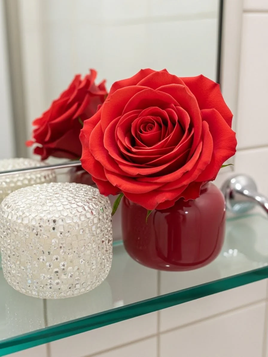 - Rose Accent on a Bathroom Shelf