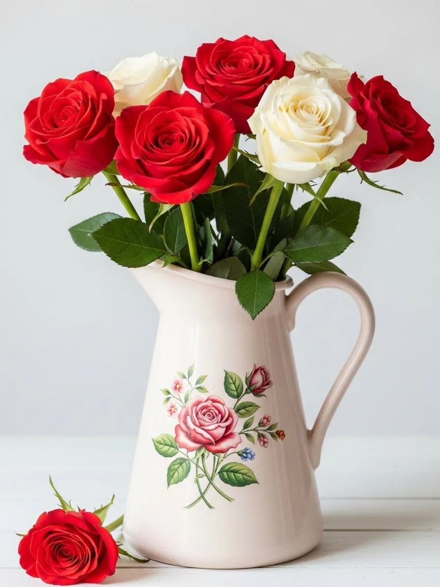 - Roses in a Ceramic Pitcher