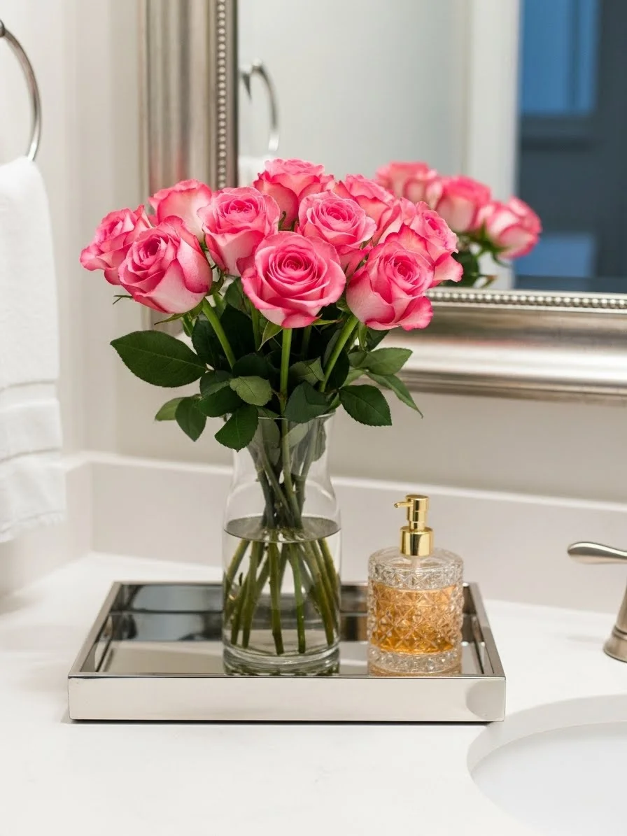 - Roses on a Bathroom Vanity Tray